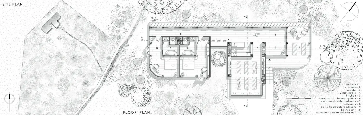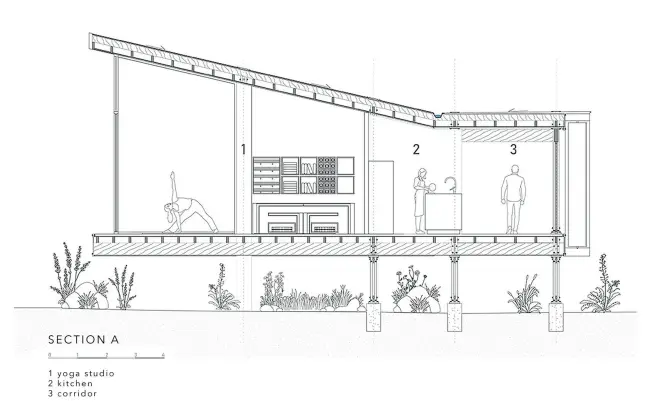 Yoga evi doğanın sesleriyle çevrili, ormanın içine uzanan huzurlu bir sığınak görevindedir. Vrikshasana pozundan ismini alan tasarım, doğaya minimumda temas edecek şekilde pilotiler üzerinde yükselerek bağlamı ile denge ve uyum içerisinde var olmaktadır.