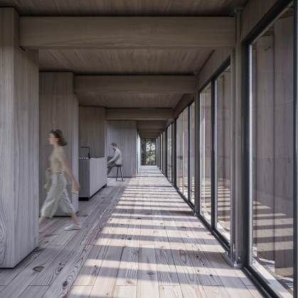 Mekan ortak alanlardan özel alanlara doğru bir akış içerisindedir. Uzun bir koridor ve ritmik yerleştirilmiş güneş kırıcılar ziyaretçiye sakinlik ve dinginlik hissi verecek bir perspektif ile tasarlanmıştır.