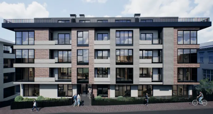 33 adet konuttan oluşan bu apartmanda modern şehir yaşamına uygun, konforlu ve işlevsel bir yaşam alanı yarat- maya odaklanılmıştır. Apartmanın ana kütlesinde alışılagelmiş bir cephe malzemesi olan tuğla kullanılırken, balkon cephe tasarımında demir korkuluklar ile birlikte SinterFlex cephe kaplaması kullanılmıştır.